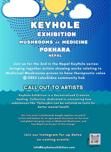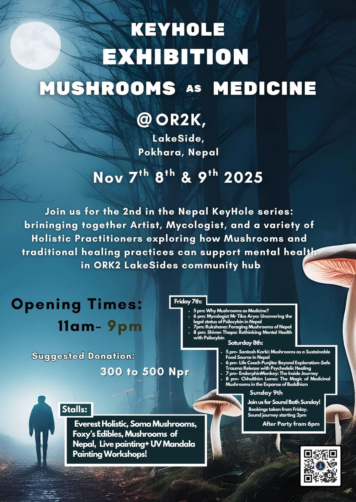 As a creative collective, we are exploring how mushrooms and traditional healing practices can support mental health. After our first Nepal event in Kathmandu in 2024, we will continue in Pokhara in 2025, bringing together artists, experts, and communities to share knowledge, art, and ideas.